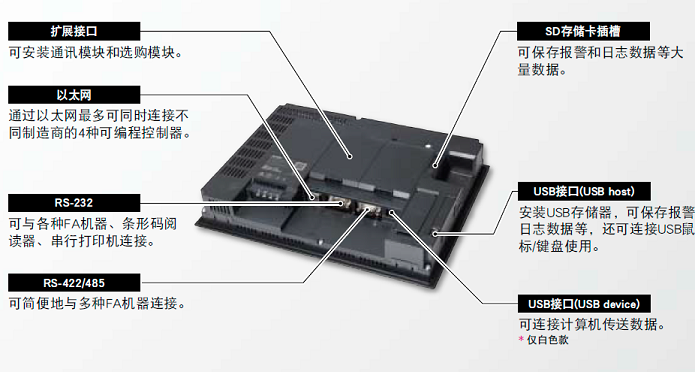 尺寸為12.1寸,65536色SVGA液晶屏,交流供電,自帶422/232/擴展口/以太網/USB
