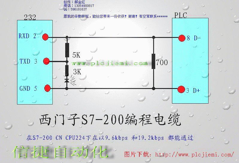 引用引用樓主jiayuanfu于2008-03-15 02:14發(fā)表的 100%能用的西門子S7-200編程電纜 :西門子S7-200編程電纜100%能用,絕對(duì)無(wú)損壞電腦和PLC,本人長(zhǎng)期使用未出現(xiàn)過問題。安全可靠。(注:681是電阻,它的阻值是680歐姆;682是電阻,它的阻值是6.8K) [attachment=5563]