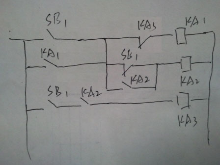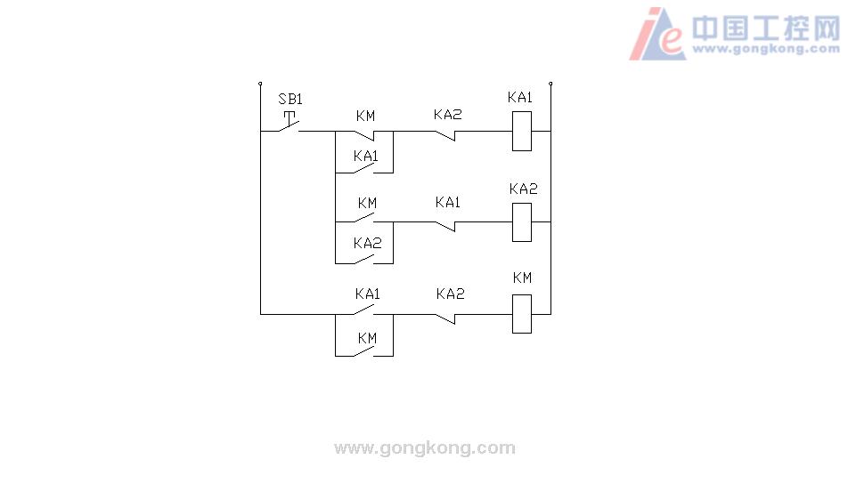 感謝!第一次按下KA1吸合,然后KM吸合,KM自鎖。第二次按下時,KA2吸合,KA2常閉會斷開,自然會斷開KM自鎖,怎么會不起作用