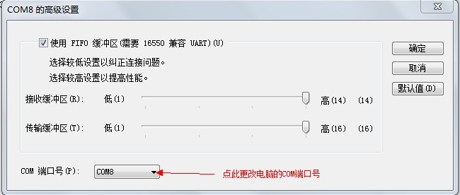c、在高級選項中,更改USB轉(zhuǎn)232的COM端口號 圖3