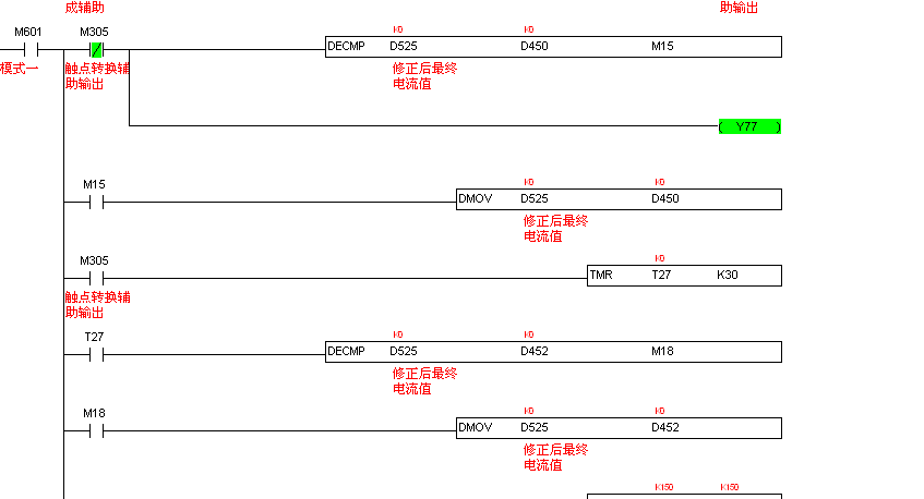 描述:這是一段臺達程序,在仿真的時候真么會出現這種情況?M601已經斷開僅是M305合上為什么y77會導通
