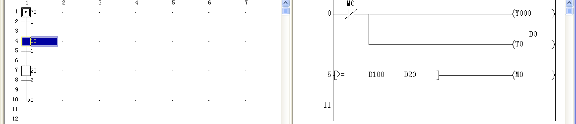 請教各位大俠。我想在狀態轉移圖的程序中加入溫度檢測模塊的FROM和TO這條指令以及比較指令是否可行?因為我試了一下,在輸出狀態里加入比較指令,上電就直接輸出y了,有點頭大了,請高手指點了。謝謝了。截圖就是我編的程序,在S10步加入觸點比較指令或者是CMP比較指令后,上電就輸出了Y0 ,X0并沒有接通,不知道是為什么。
