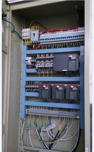 這是我第一次自己做的電箱,電箱選小了,布置很亂,線也是用舊線,不過(guò)是實(shí)驗(yàn)機(jī)就將就用了。