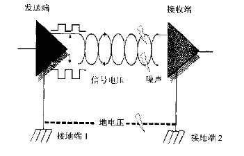 RS-232串行通訊的標準電壓是參考接地端而來。發送端由發送數據端參考發送端的接地電壓發送數據,接收端由接送端與接送端的接地電壓來接收數據。如果中間有噪聲進入,則會產生干擾。