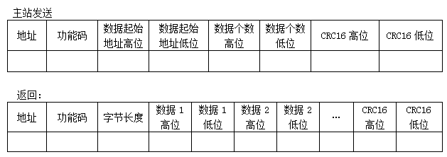 主站命令中的參數是從寄存器地址開始的寄存,讀寄存器長度的N個寄存器。(5)從站響應數據