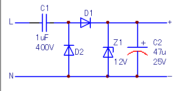 阻容降壓電路,集降壓、整流、穩壓未一體,低成本產品多使用這種方案,但能提供小電流有限,穩壓精度也差