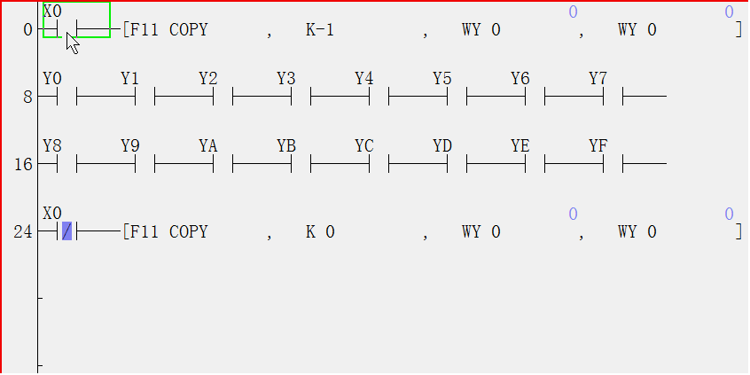 我試了一下F11 COPY  K1 WY0 ,結果只有Y0的燈亮。請問各位老師指導下,謝謝了!
