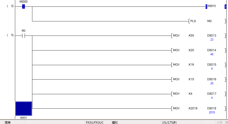 之前使用FX3U系列的PLC,時鐘寄存器使用是正常的,第一次使用用M8015觸發(fā)一下就可以了,之后都是實時時間了。(如圖1所示)
