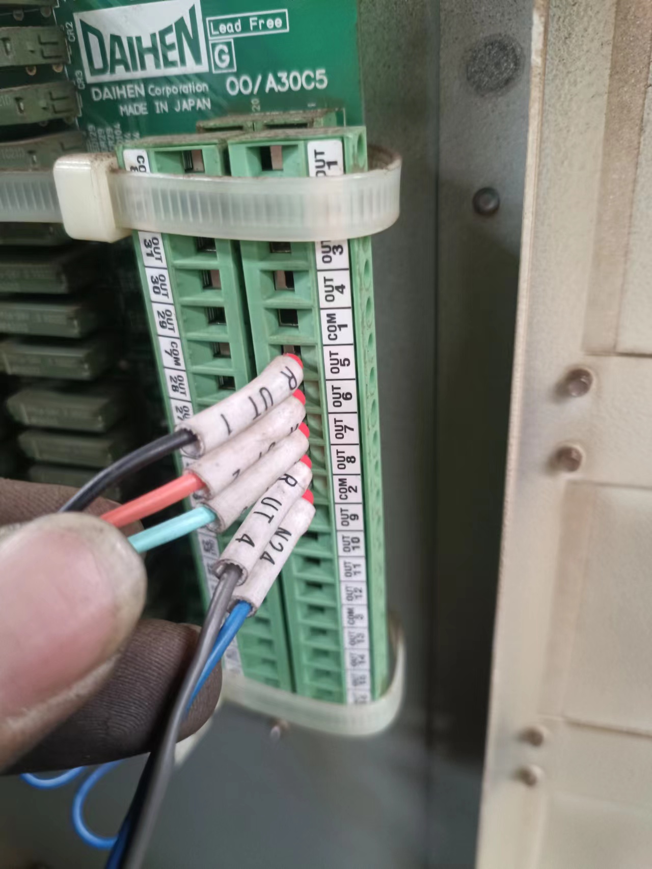 最近有個焊接夾具的項目,工作站有機器人和連個焊接工位,現(xiàn)在焊接工藝里要求焊接過程中打開一部分氣缸進行二次焊接,那就需要把機器人的i/o信號接入plc:到達二次焊接位置,發(fā)出一個R OUT 1打開夾具,夾具打開完成給一個R IN 1給機器人,機器人是OTC和松下,有問題的可以一起討論