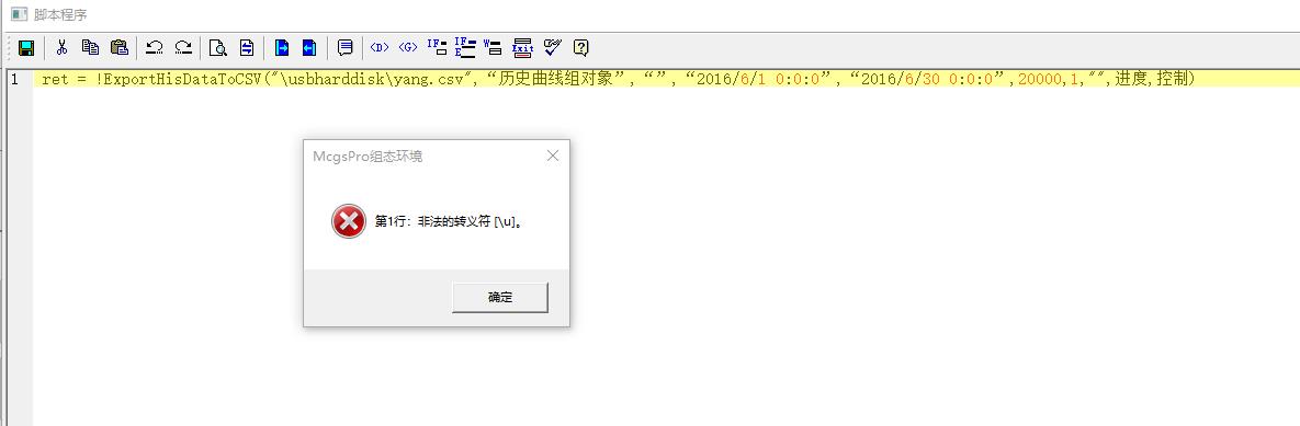 昆侖通態觸摸屏 歷史數據存U盤報錯非法轉義符[\u]