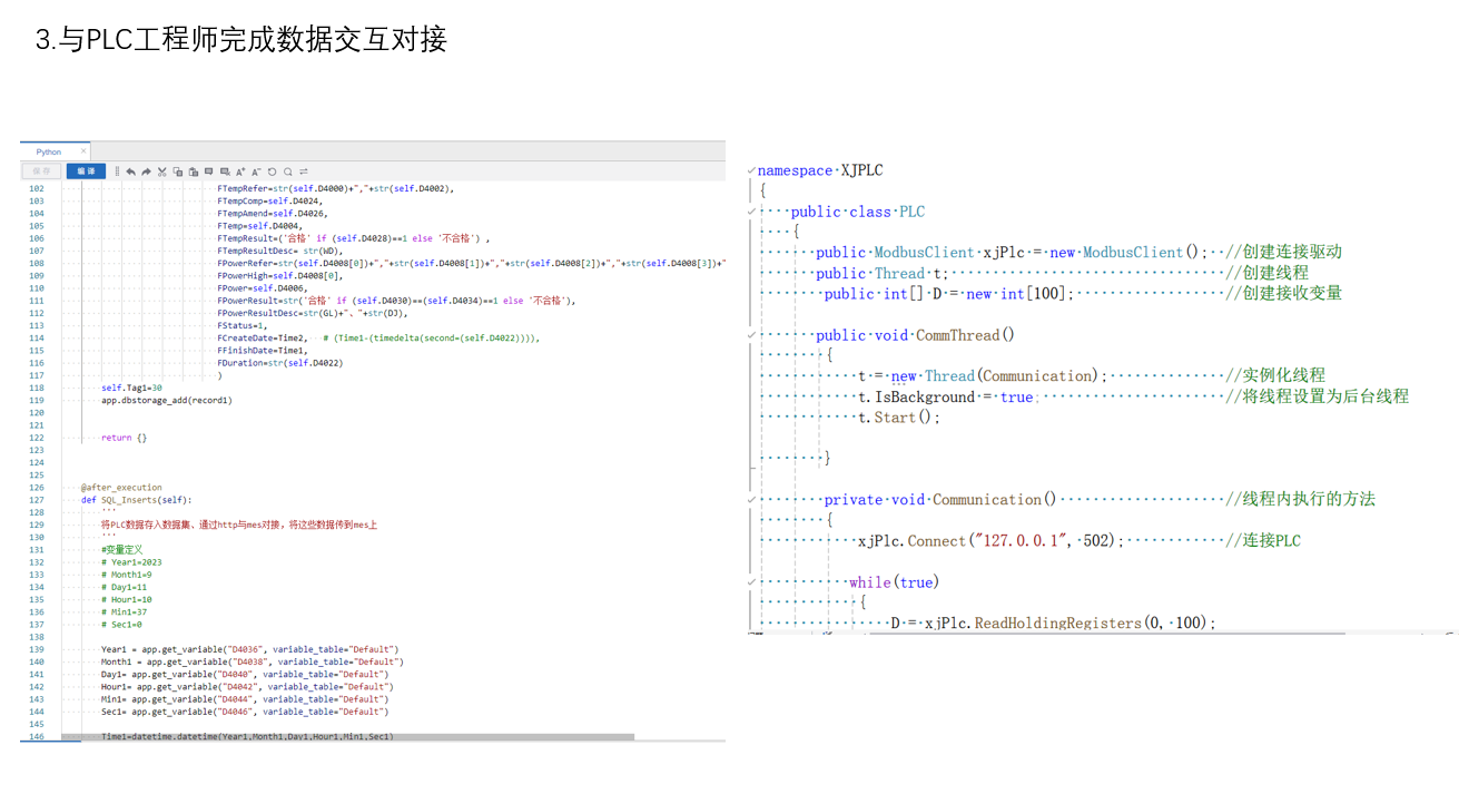 3.與PLC工程師對接數據地址,和數據格式,并完成與PLC交互測試。