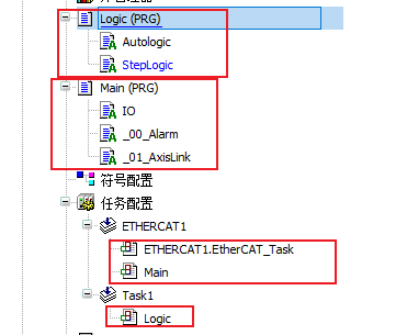 我一般都是,EtherCAT用來放軸之類或優先級別高的需要先處理的,TASK放其他,不知道對不對。