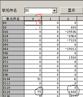 FX1N 60MT開機時就會在寄存器D130 D132中顯示數(shù)值。