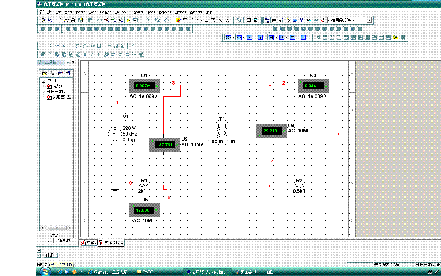 我對變壓器一二回路 做了個簡單仿真實驗 現(xiàn)在想結(jié)合一二次側(cè)的回路平橫方程問個問題
