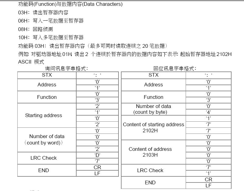 一,用詢問訊息字串格式,這個是PLC發指令給變頻器的格式