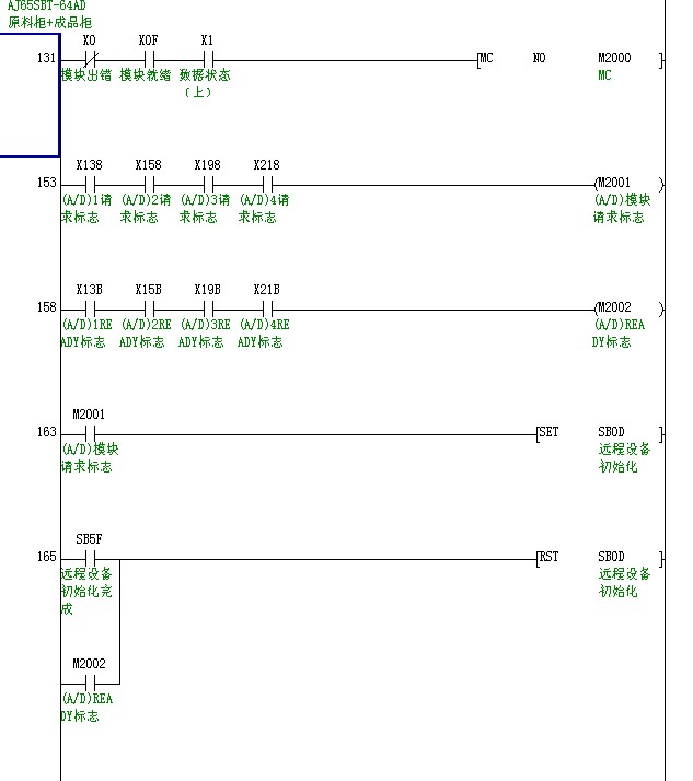 主站和CC-LINK 都沒報警,前面5塊模塊也正常(都有“請求標志返回”分別是 X138、X158、 X198)最后一塊模塊就沒 “請求標志返回”“X218”  程序就不能運行了。AD程序見 圖3。 我幫程序和軟原件分配表打包,那位大俠幫小弟看看問題出在那里。