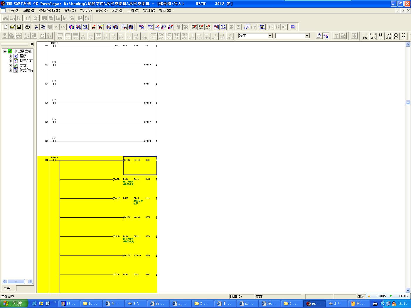 我今天三菱2N的PLC中讀出程序發現了,讀出后的程序有一部分是黃色的,本來正常情況全是白色的,我覺得奇怪,大家說說了