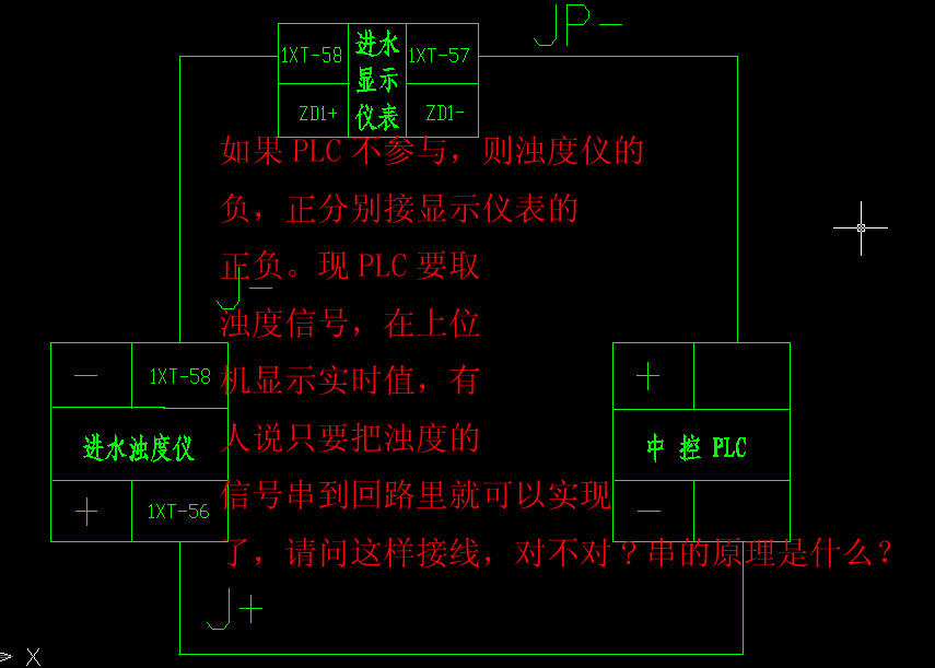 水處理工程上現場有濁度儀采集信號,配電室顯示現場濁度值,中控室的上位機也要實時顯示現場濁度值,具體問題見圖