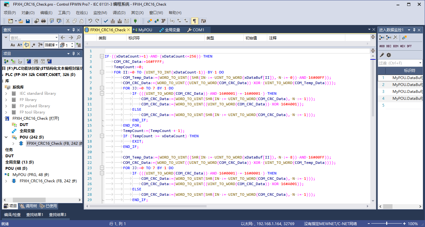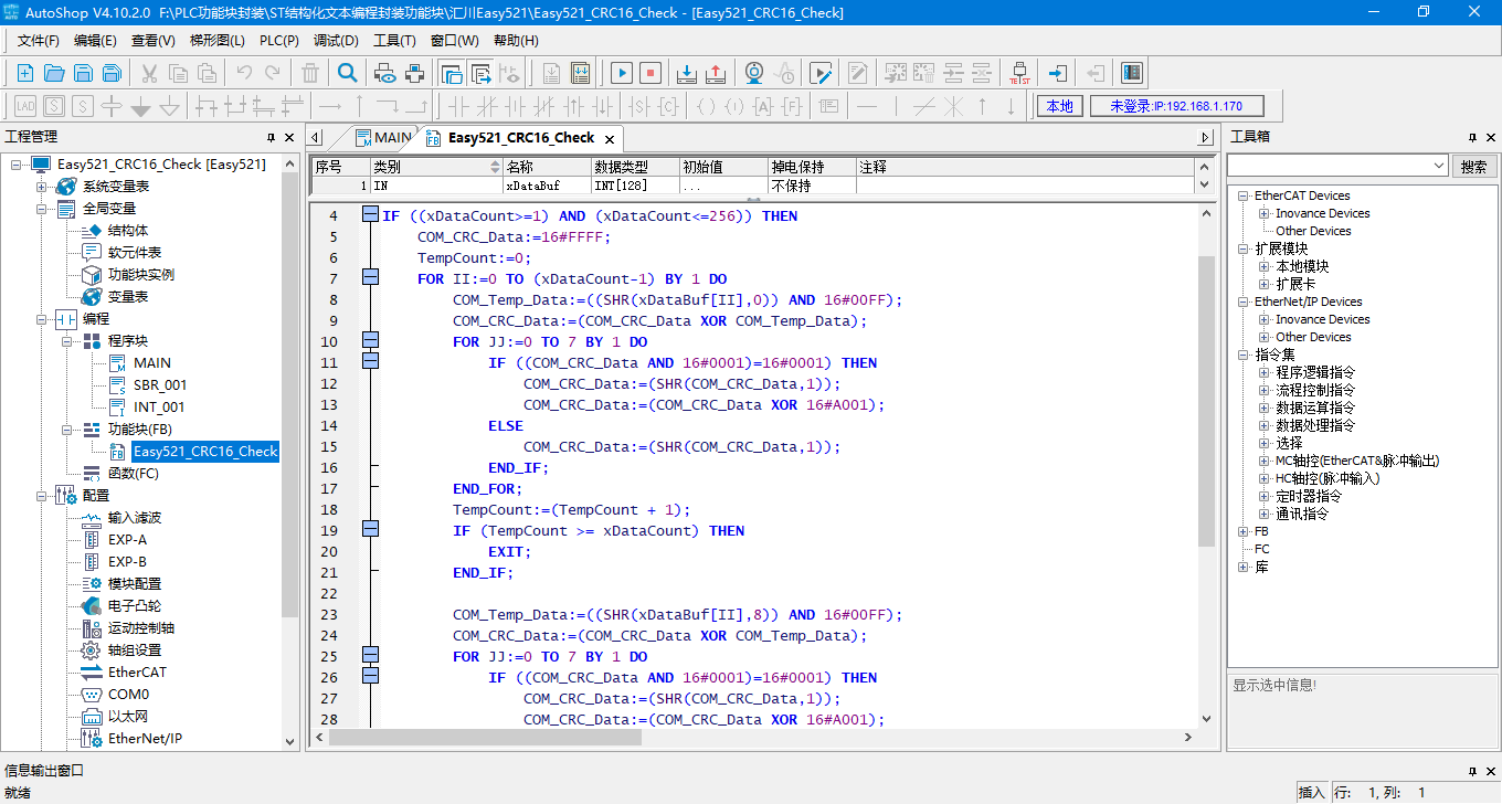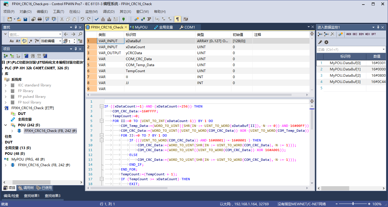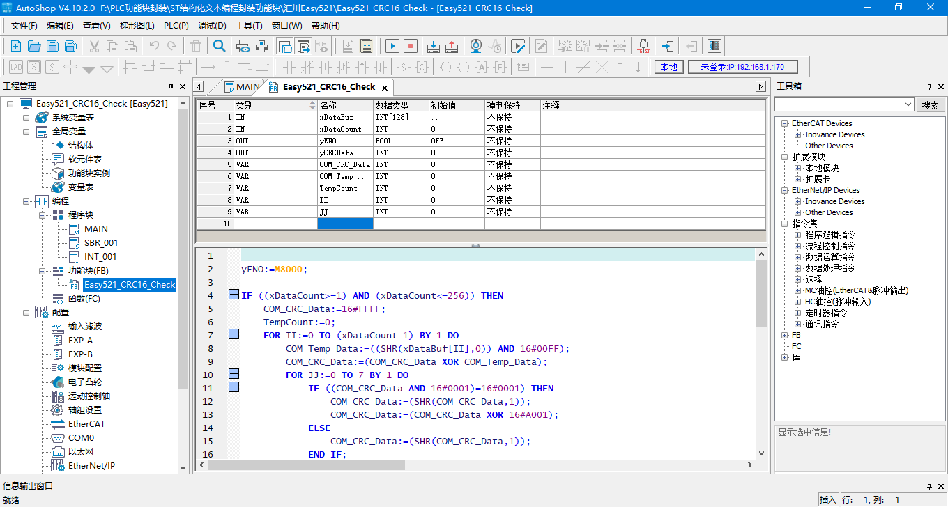 8種PLC結(jié)構(gòu)化文本編程封裝CRC16校驗(yàn)功能塊