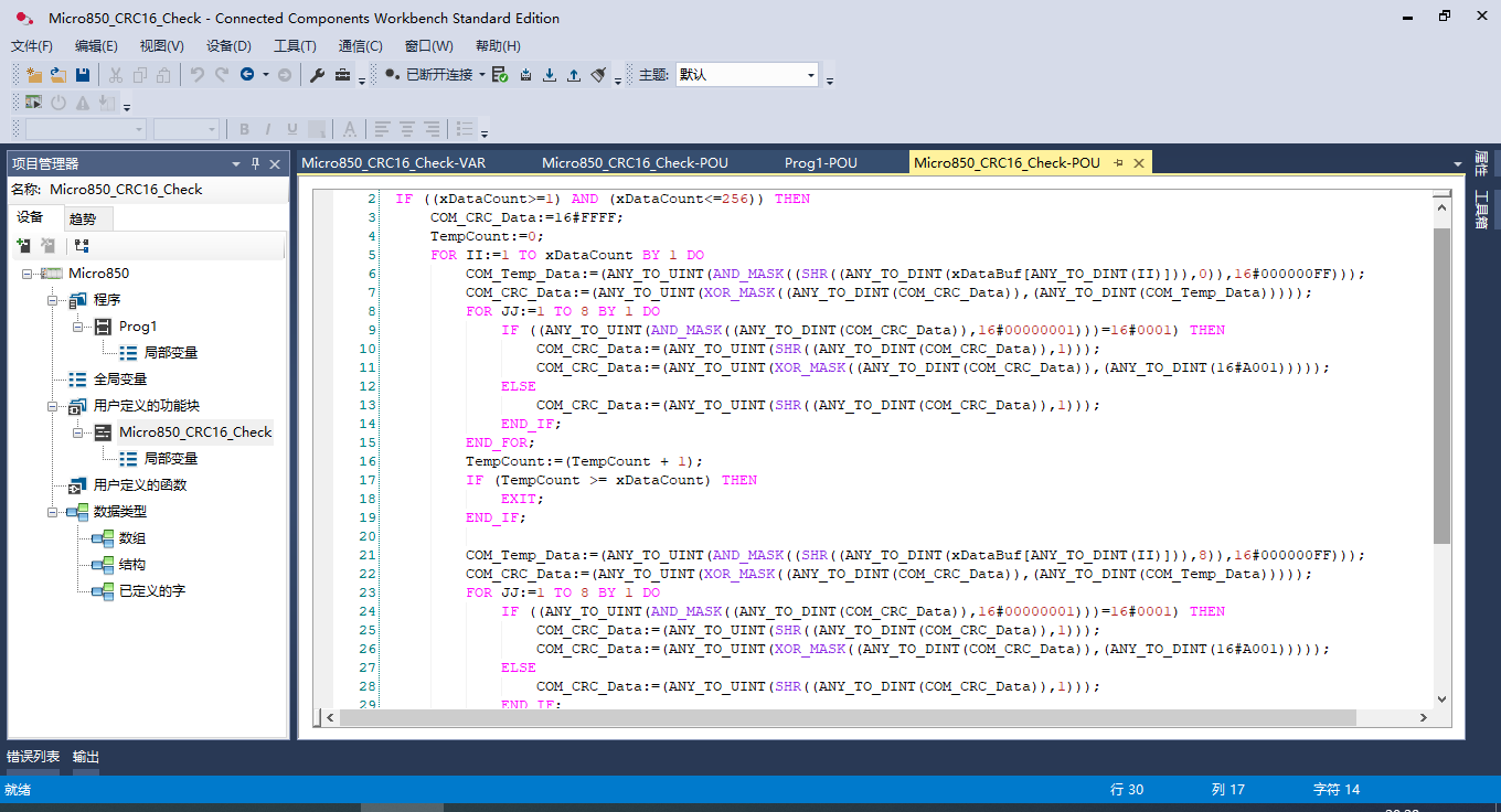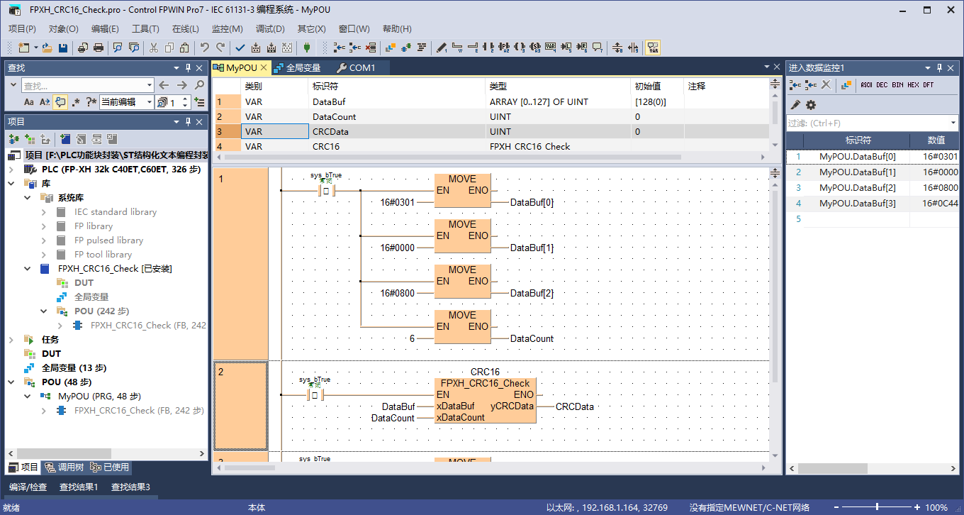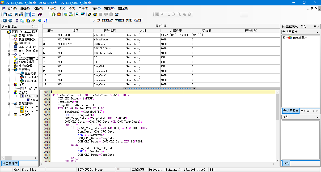 8種PLC結(jié)構(gòu)化文本編程封裝CRC16校驗(yàn)功能塊