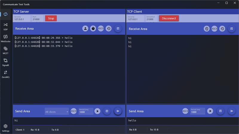 在Windows應用商店發布了通信調試工具,可以調試TCP、UDP、WebSocket、MQTT,界面同時展示服務端和客戶端方便調試。