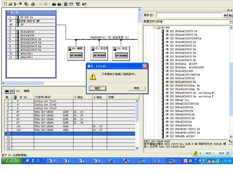 這是一條正在生產(chǎn)的流水線,PLC是西門子的S7-300 CPU 315-2DP,由于輸出點不夠,現(xiàn)需加裝一塊6ES7 322-1BL00-0AA0 SM 322 DO32xDC24V\0.5A 的輸出模塊。但在組態(tài)網(wǎng)絡(luò)時出錯,出錯信息:插入(13.6) 只有模塊才能插入到機(jī)架中。