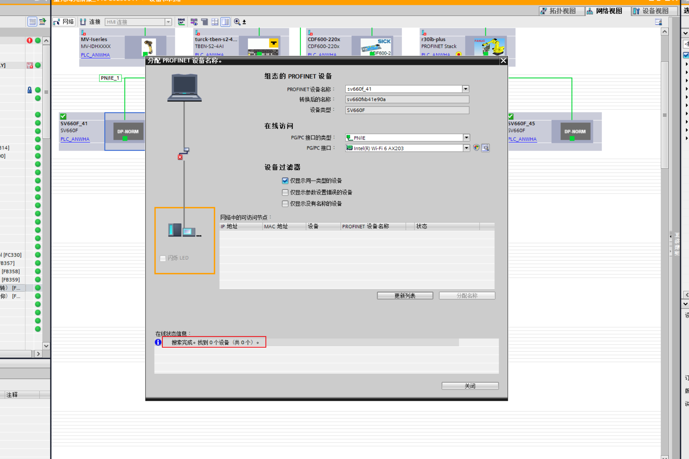 博圖v18在組態里面分配伺服名稱時找不到設備,檢查了驅動器網線連接沒有問題,換成同事的電腦就可以找得到了,有遇見過這種問題的朋友嗎?