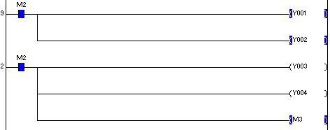 輸出Y000  Y003 Y004 在監(jiān)視圖里沒(méi)有輸出 在PLC上有輸出指示燈,不過(guò)效果和點(diǎn)動(dòng)的查不多一閃一閃的。這個(gè)問(wèn)題出在那啊? 原來(lái)是M2直接驅(qū)動(dòng)Y003 Y004的還是這個(gè)情況