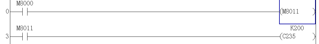 用8012好使,8011就不好使;我用的是c0;連上plc,沒寫入,監視運行時,都不好使了;為什么啊?明天用c220試試,也不知道fx1n有沒有C220~c234;這幾個特殊在哪呢?是不是10ms的脈沖,不能用16位計數器接收啊?