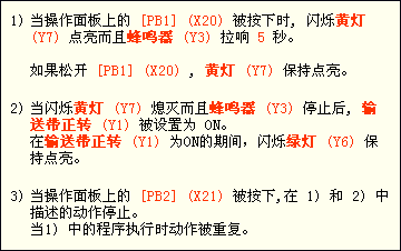 請大家看下,這個怎么編程啊,用一個燈一個蜂鳴器的停止信號來作為另一電機Y1的啟動信號,