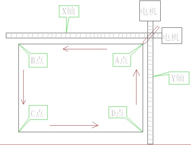 用絕對位置控制,當Y軸到C點時 X軸電機就會原點到D。然后X軸回原點完成在Y軸在回原點到A點。