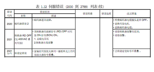 今天用了一個(gè)三菱的MR-J3的伺服,他會(huì)報(bào) 2021的錯(cuò)誤代碼,在伺服放大器上顯示 21 。 我查了中英文的的手冊(cè),都沒(méi)有找到這個(gè)代碼,這是什么情況?