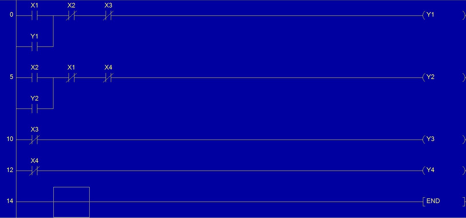 開關x1和X2互鎖,感應器X3和X4 。指示燈Y3和Y4。但視乎少點什么。電磁線圈Y1和Y2怎么停下來?