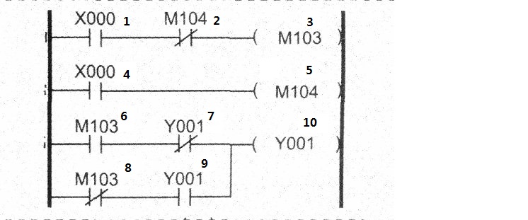如圖a內的X0接通后,輔助繼電器M103接通。同時Y1線圈開始輸出,我想問的就是為什么M103只在一個掃描周期接通,而Y1一直有輸出ON。再次接通X0后,Y1輸出OFF。第4和5步沒執行,而6、7和10就執行了呢?