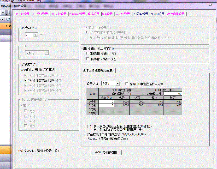 手上有兩套Q01UCPU組成多系統,參數如圖,可是下進去提示錯誤?7032代碼?怎么回事?