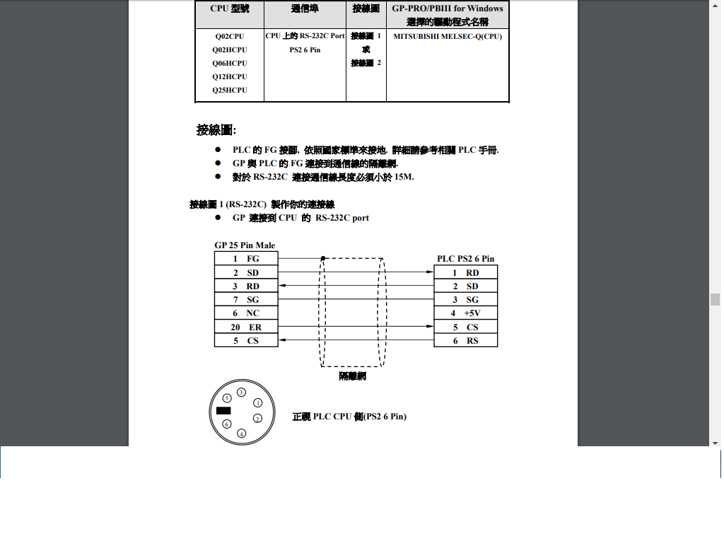 請(qǐng)問一下三菱Q02Hcpu的圓頭6針是怎么定義的,怎么個(gè)排序方式。網(wǎng)上找了好久都沒找到6針腳位定義