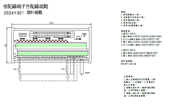假如是要用成品的端子排和電纜,就不需要使用插頭了。QX81用端子排A6TBX36-E,QY81P用A6TBY36-E。電纜用AC05TB-E AC10TB-E AC20TB-E