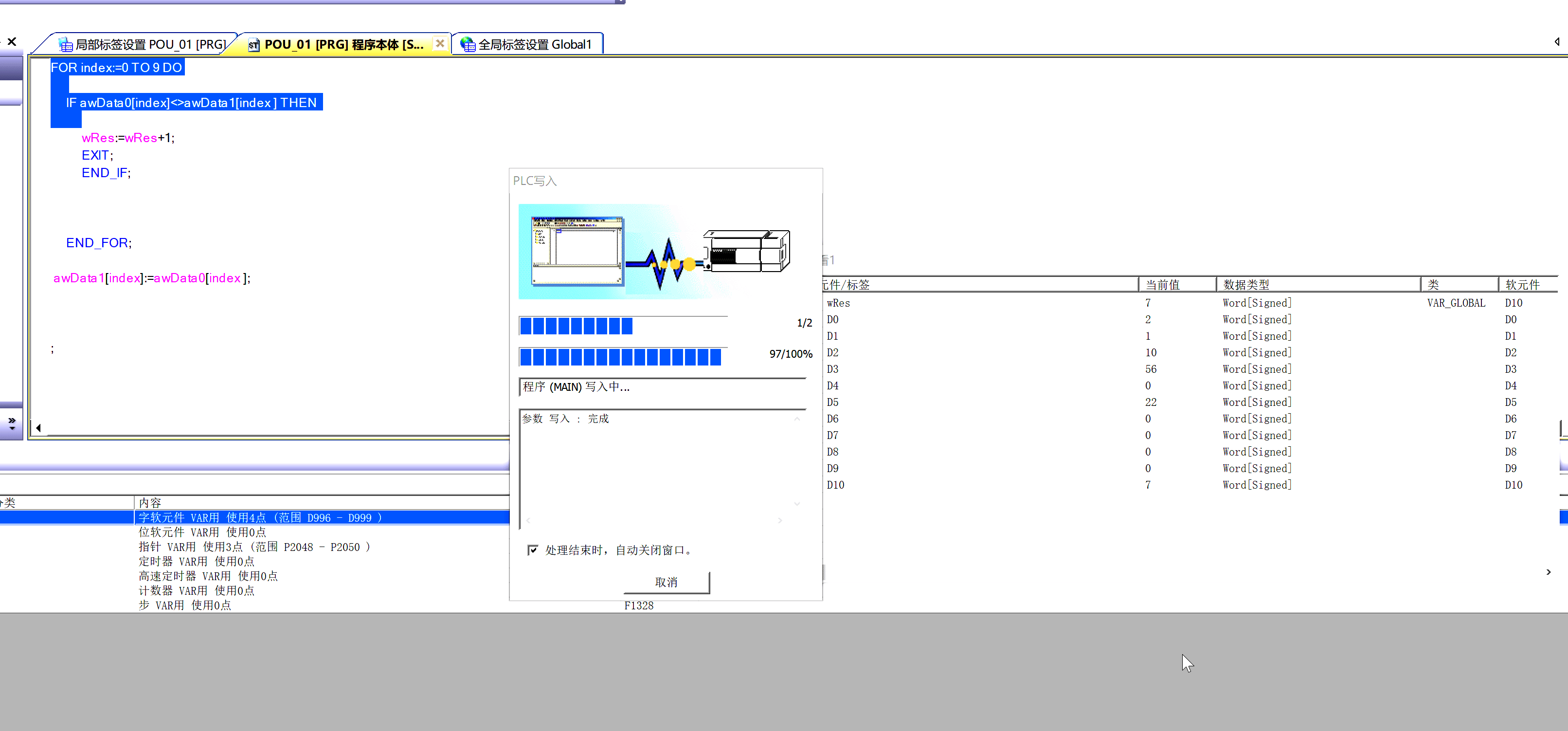 我都是用先D0~D9丟到D20~D29.用<>的時候做加1.