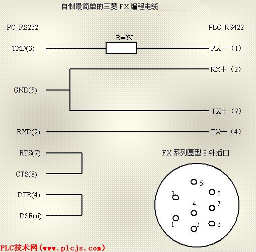 FX3U自帶8針圓孔的422口,現在我有一根線,一端是圓孔的,一端是9針的,我又買了一根422轉USB的,為什么連不上PLC?