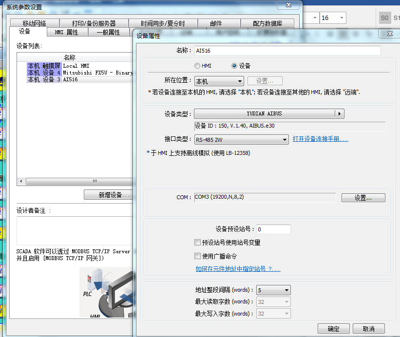 都有觸摸屏了,建議用觸摸屏來直接與儀表通訊,一般的觸摸屏都支持與宇電的儀表通訊,選擇AIBUS就行了。