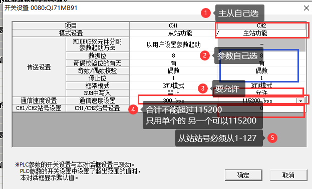 QJ71MB91做從站,CH1 主站300波特率(不用)CH2從站波特率只能設(shè)定9600,