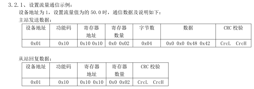 RS2只支持16位發送和接收,也就是計算CRC后,合并高低位再發送