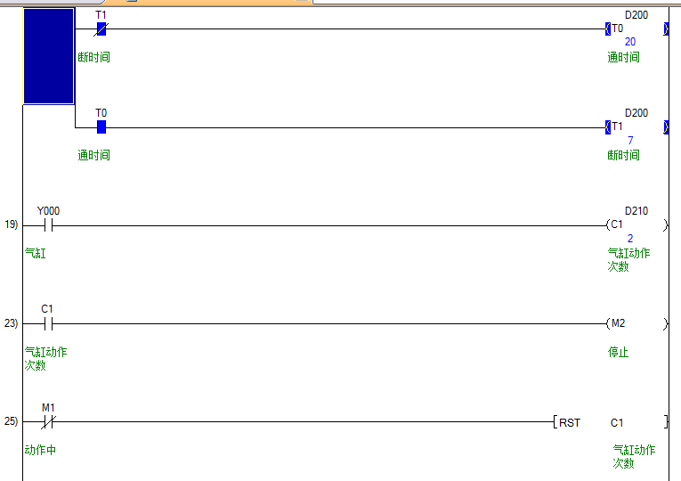 OUT_T(M1,TC1,30);(*3s開(kāi)啟Y1*)
