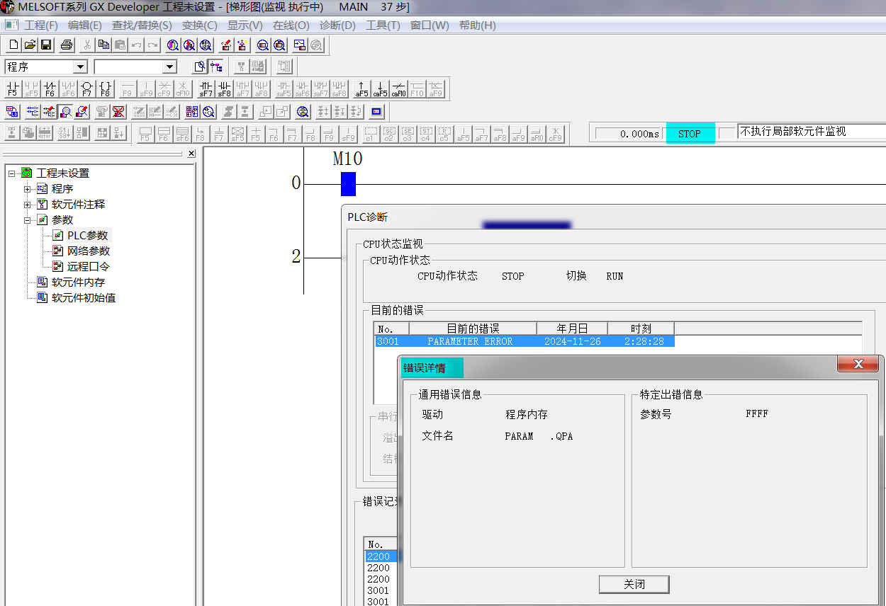 新建一個簡單程序:LD M10 OUT Y62,  寫入會提示8041,必須格式化PLC才能寫入,但監(jiān)視時會提示4064參數(shù)問題云云,系統(tǒng)監(jiān)視卻提示CPU中度錯誤!有碰到這種問題的嗎?