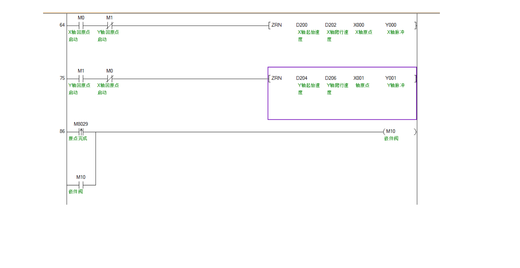 M8029直接母線的結果就是:只要是Y0執(zhí)行完脈沖指令都會導通一次,滿足M8029后方的執(zhí)行條件。