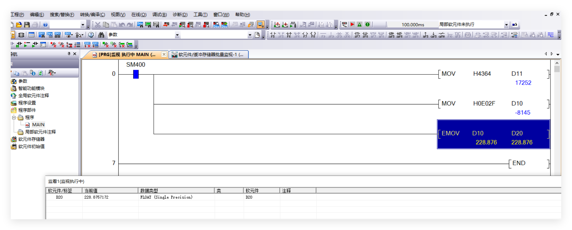 如題,MODBUS讀取的數據是16進制數,雙字的,D5205和D5206是一組,用什么指令轉成浮點數?