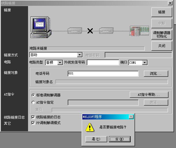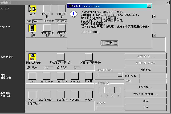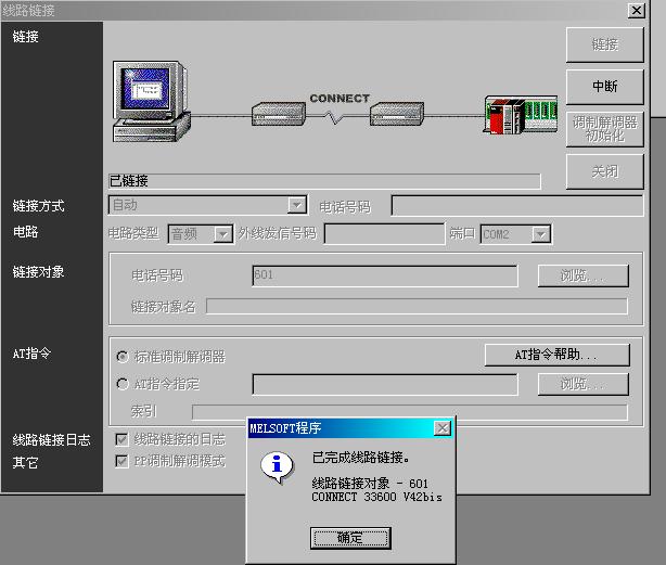 [attachment=6885] [attachment=6885]  我嘗試用56K的外置式調制解調器對FX2N的PLC進行遠程編程及監控,軟件是GX-DEVELOPER  V8.5版本,D8120通訊格式設為H C881,FX2N上安裝了FX2N-232-BD功能擴展板,PLC側的調制解調器是用RS232 C 之9針D-SUB與FX2N-232-BD直聯,但是每次撥號都只能是電腦與PLC側的調制解調器聯接成功,而GX-DEVELOPER 軟件不能與FX2N通訊,請高手指點迷津。相關的連線信息及報錯信息如下圖: