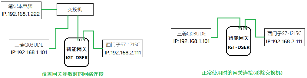 系統(tǒng)的網(wǎng)絡(luò)結(jié)構(gòu)圖,網(wǎng)關(guān)支持熱插拔自恢復(fù),以下是設(shè)置時(shí)和運(yùn)行時(shí)的網(wǎng)絡(luò)連接關(guān)系: