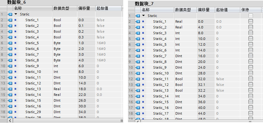 通過西門子PLC的編程軟件建立數(shù)據(jù)塊_6[DB10]、數(shù)據(jù)塊_7[DB20],然后下載到PLC: