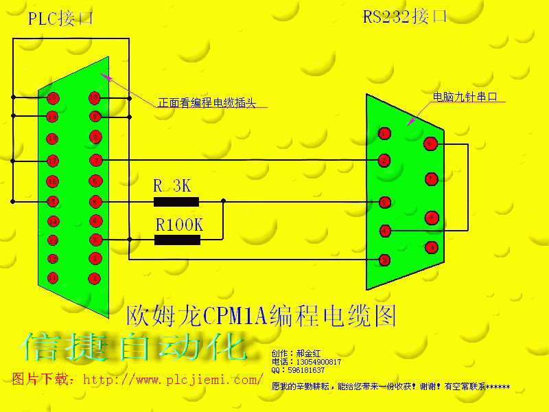 歐姆龍RS232通訊電纜編程電纜自己做的接線圖,謝天謝地